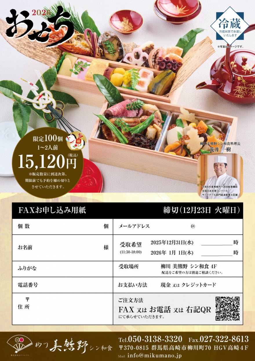 4F美熊野では今年もおせちのテイクアウト販売をいたします。
